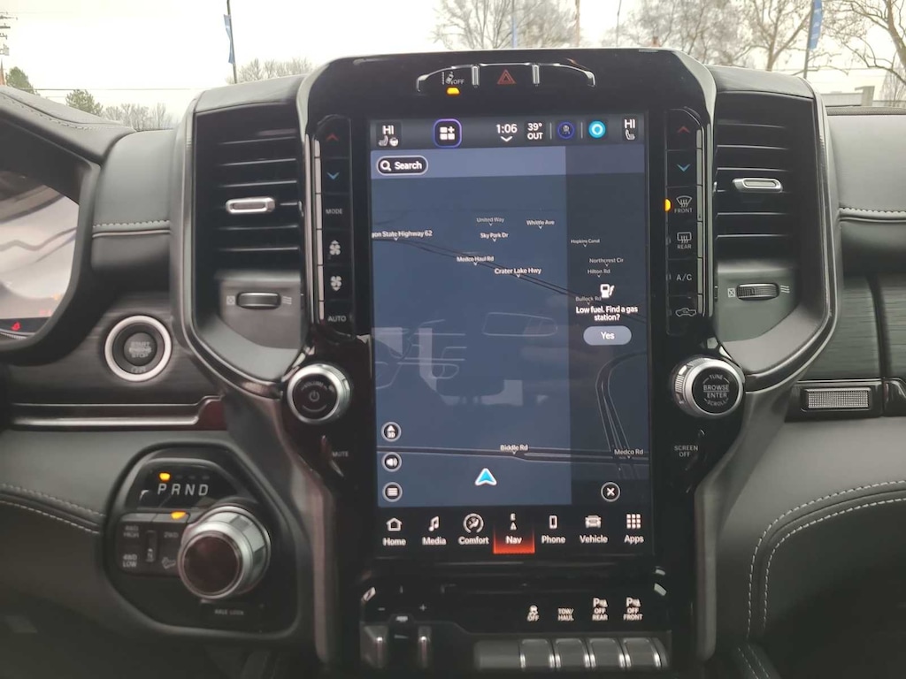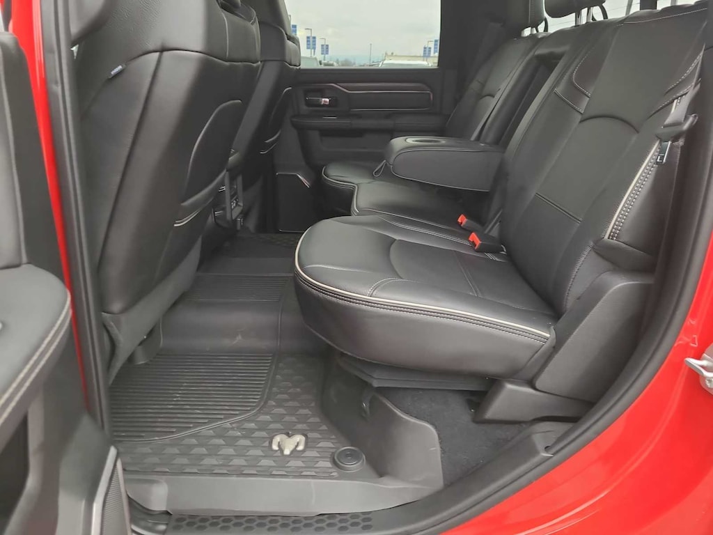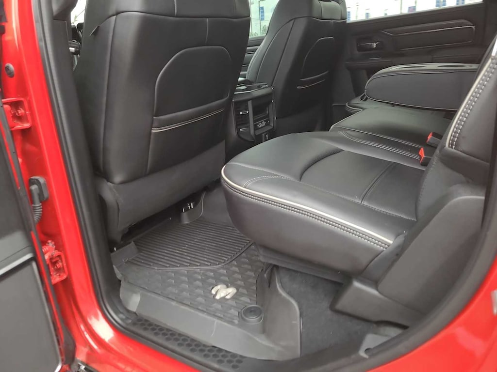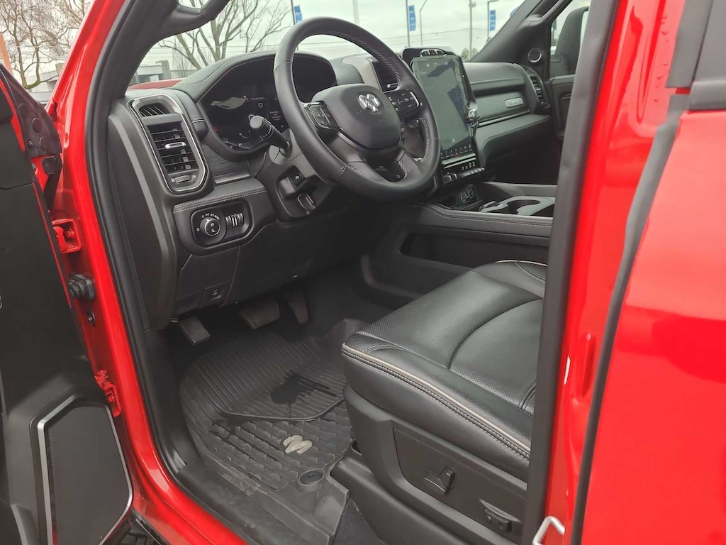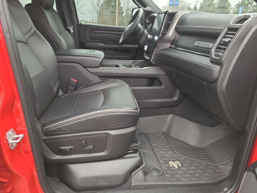 Leather Seats, 4x4, Heated Driver Seat, Heated Rear Seat, Cooled Driver Seat, iPod/MP3 Input, CD Player, Trailer Hitch, Aluminum Wheels, Dual Zone A/C, Smart Device Integration, WiFi Hotspot, Apple CarPlay®, Heated Seats, Heated Leather Seats Ram Rebel with Flame Red Clearcoat with Diamond Black Crystal Pearlcoat exterior and Black interior features a 8 Cylinder Engine with 370 HP at 2800 RPM*.