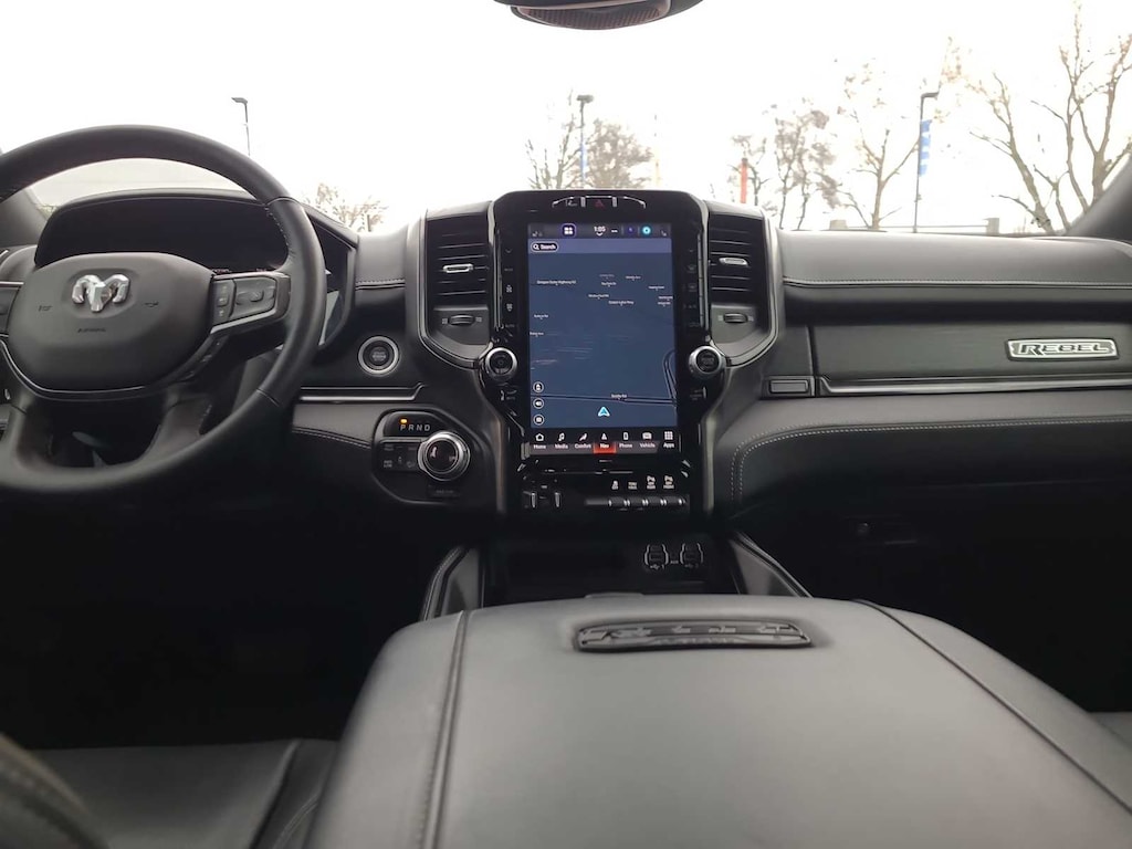 TOWING TECHNOLOGY GROUP CTR Stop Lamp w/Cargo View Camera, Surround View Camera System, Blind Spot & Cross Path Detection, Trailer Reverse Guidance, LEVEL 2 EQUIPMENT GROUP Power Adjustable Pedals w/Memory, For Details, Visit DriveUconnect.com, For More Info, Call 800-643-2112, 12 Touchscreen Display, Auto Power-Folding Mirrors, Mirror Running Lights, Alexa Built-In, Security Alarm, Power Adjustable Convex Aux Mirrors, Premium Overhead Console, Forward & Reverse Utility Lights, Disassociated Touchscreen Display, 17 Speaker harman/kardon® Premium Sound, LED Interior Lighting, LED Dome Lamp w/On/Off Switch, Universal Garage Door Opener, 2nd Row In Floor Storage Bins, Sun Visors w/Illuminated Vanity Mirrors, Black Rotary Shifter w/Silver Stripe, Rear Window Defroster, Rain Sensitive Windshield Wipers, Rear Power Sliding Window, Body Color Door Handles, GPS Navigation, Overhead LED Lamps, Exterior Mirrors w/Heating Element, Auto Dim, SAFETY GROUP Auto High Beam Headlamp Control, Blind Spot & Cross Path Detection, Rain Sensitive Windshield Wipers, Adaptive Cruise Control w/Stop, Adaptive Steering System, Full Speed Forward Collision Warning Plus, Lane Keep Assist, POWER SUNROOF, PAINTED FLAT CAB-LENGTH SIDE STEPS, MOPAR SPRAY IN BEDLINER, TRANSMISSION: 8-SPEED AUTO (8HP75-LCV), ENGINE: 6.4L V8 HEAVY DUTY HEMI MDS, QUICK ORDER PACKAGE 2GR REBEL Engine: 6.4L V8 Heavy Duty HEMI MDS, Transmission: 8-Speed Auto (8HP75-LCV), Rebel Suspension, Instrument Cluster Theme 2 - Rebel, Michelin Brand Tires, Conventional Differential Front Axle, 4x4 Badge, 220 Amp Alternator, Rebel Instrument Panel Badge, Painted Semi-Texture Film Instrument Panel Bezels, Limited Slip Rear Differential w/Electronic Lock, Rebel Badge, 18 Steel Spare Wheel. MP3 Player, Privacy Glass. Serviced here, Non-Smoker vehicle, Carfax one owner