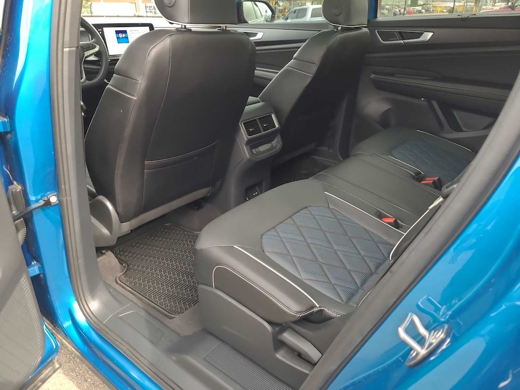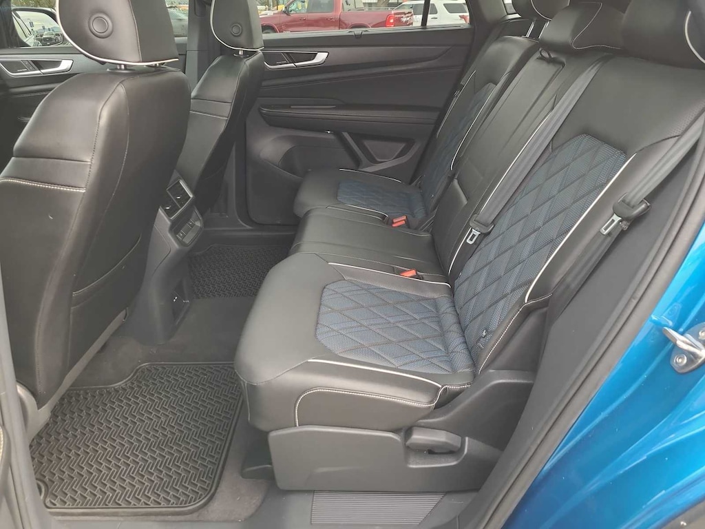 Leather Seats, Navigation, Sunroof, Panoramic Roof, All Wheel Drive, Power Liftgate, Heated Driver Seat, Heated Rear Seat, Cooled Driver Seat, Back-Up Camera, Turbocharged, Premium Sound System, Satellite Radio, iPod/MP3 Input, Onboard Communications System. Volkswagen 2.0T SEL Premium R-Line with Kingfisher Blue Metallic exterior and Titan Black w/ Blue Underlay interior features a 4 Cylinder Engine with 269 HP at 5500 Rpm*. Rear Spoiler, MP3 Player.